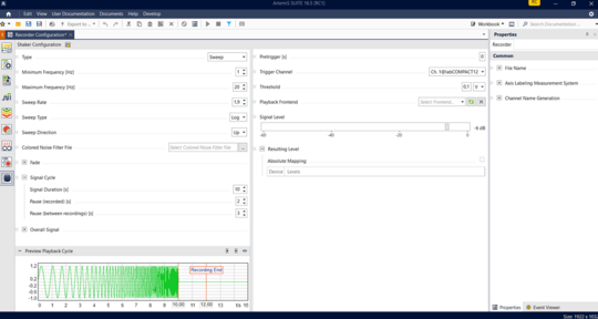 当需要更多激励能量或对激励的可重复性要求较高时,可以用激振器对结构进行激励。在 ArtemiS SUITE 数据采集模块中,有专用于快速激振器测量而设计的页面,简单易用,可以在同一个页面上找到所有相关的配置步骤。可以快速设置不同的信号类型,和不同的激励方案。使用我们的专用激振器硬件 labV12-O4 II 和小巧方便的 Qsources 惯性激振器,可以深入了解结构属性。