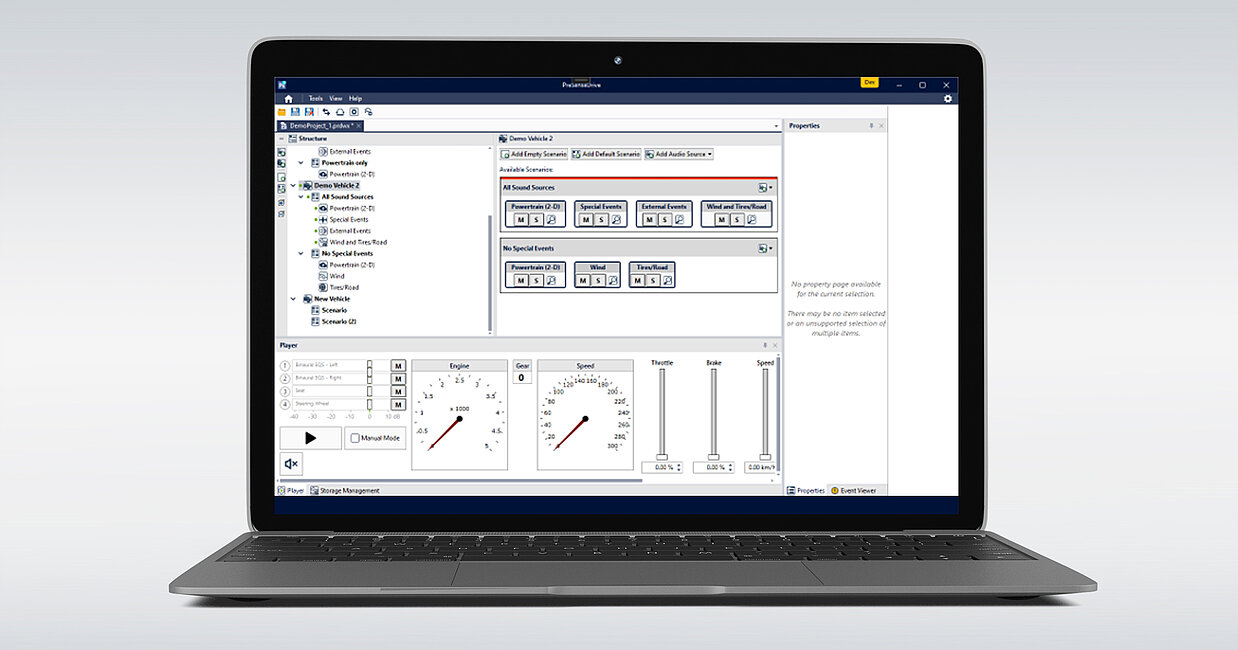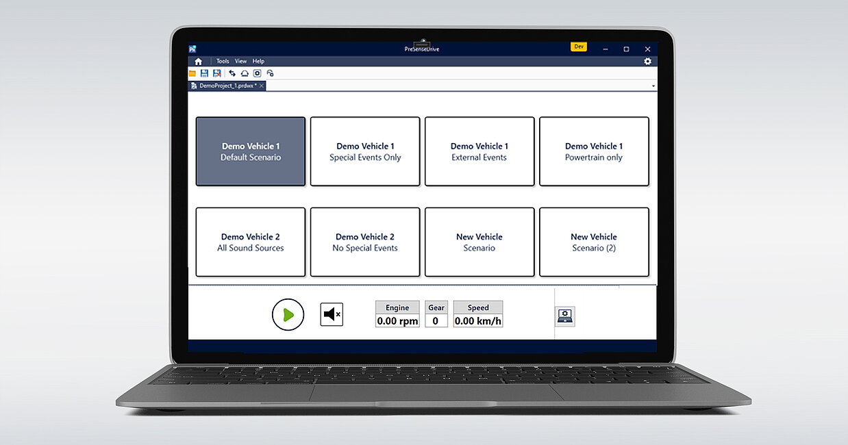 PreSense Drive is an efficient and affordable solution for realistically simulating vehicle noises and sounds. It ensures the highest auralization quality and binaurally calibrated playback on headphones, loudspeakers, and vibration excitation by shakers - for an immersive physical sound experience that gives drivers the feeling of being in a moving vehicle and acting accordingly. PreSense Drive thus provides a realistic basis for designing the sound space, for example, in HMI (Human-Machine Interface), ASD (Active Sound Design), ADAS (Advanced Driver Assistance Systems), and sound design projects.